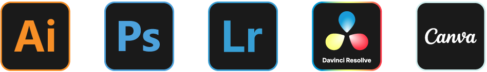 I work primarily in Adobe Illustrator and Photoshop to develop visually compelling brand identities, digital assets, and design solutions that balance creativity with clarity.